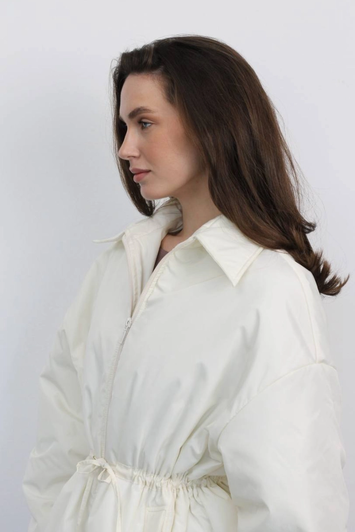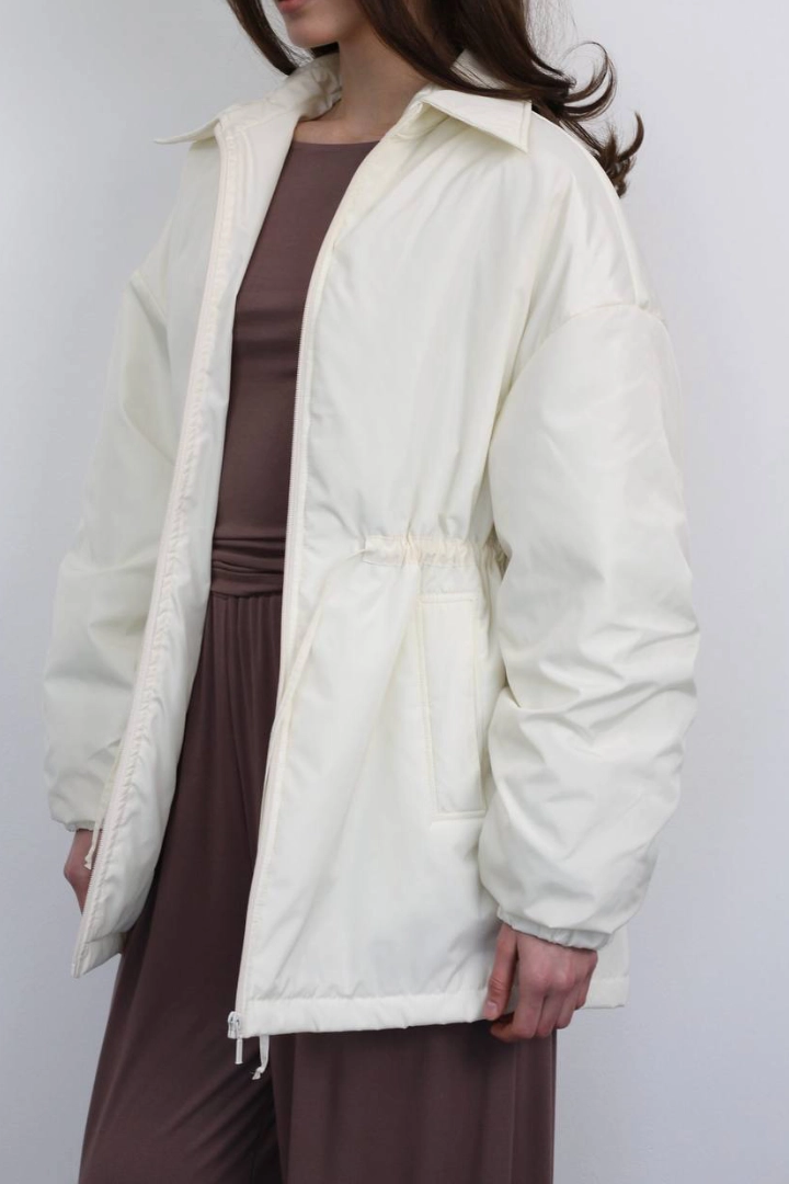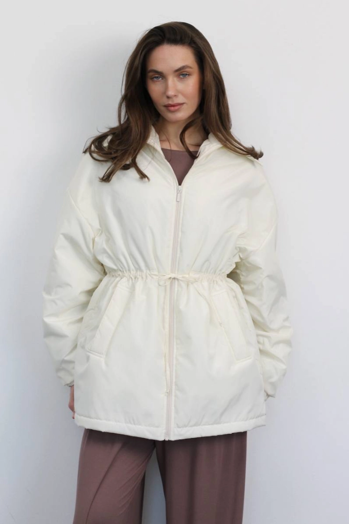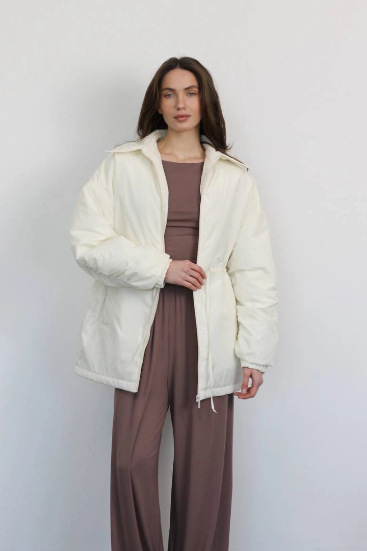 Бомбер в молочному кольорі на утеплювачі.